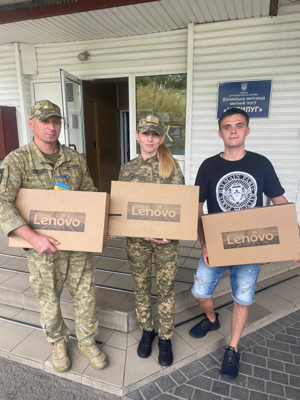 Троє волонтерів нашого благодійного фонду передали ноутбуки Lenovo співробітникам 6-го прикордонного Волинського загону.